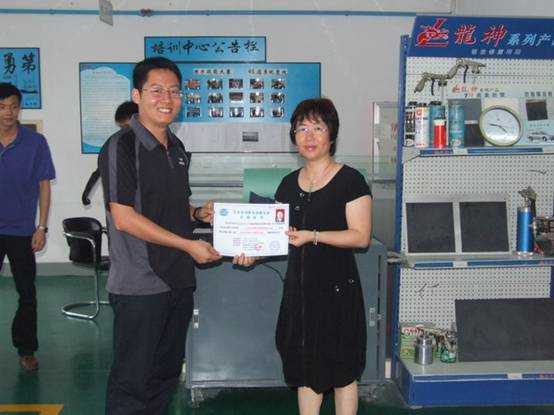 彭經理頒發(fā)“汽車車身修復技能認證合格證書”