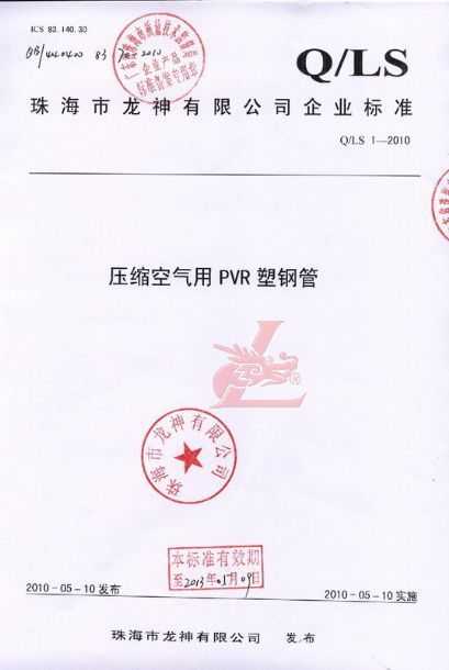 龍神壓縮空氣PVR塑鋼管成功申請(qǐng)企業(yè)執(zhí)行標(biāo)準(zhǔn) 2010年5月珠海市龍神有限公司“壓縮空氣PVR塑鋼管”得到珠海市質(zhì)量技術(shù)監(jiān)督局認(rèn)可,特此頒發(fā)“壓縮空氣PVR塑鋼管企業(yè)執(zhí)行標(biāo)準(zhǔn)”,龍神公司在嚴(yán)格執(zhí)行標(biāo)準(zhǔn)下,保證產(chǎn)品質(zhì)量。 2010-05-20 10014