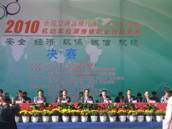 10月14日-15日,由交通運(yùn)輸部舉辦的全國(guó)交通運(yùn)輸行業(yè)“卡爾拉得杯”機(jī)動(dòng)車檢測(cè)維修職業(yè)技能競(jìng)賽決賽在北京交通運(yùn)輸部管理干部學(xué)院舉行。來(lái)自全國(guó)24個(gè)?。▍^(qū)、市)的238名選手參加了本次競(jìng)賽決賽。交通運(yùn)輸部副部長(zhǎng)馮正霖出席開(kāi)幕式并宣布決賽開(kāi)始,競(jìng)賽組委會(huì)主任、交通運(yùn)輸部人事勞動(dòng)司司長(zhǎng)兼評(píng)價(jià)中心主任何捷講話。本次競(jìng)賽活動(dòng)龍神公司設(shè)立產(chǎn)品展覽攤位,展出包括競(jìng)賽產(chǎn)品在內(nèi)共計(jì)100余件,得到了領(lǐng)導(dǎo)及院校的一致好評(píng)。