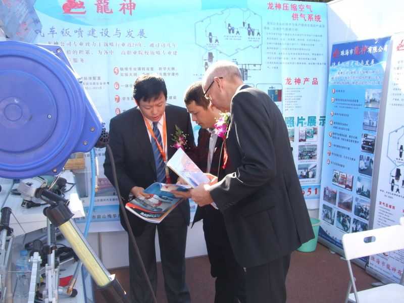 國(guó)外友人觀看龍神產(chǎn)品并與我司蘇副總交談