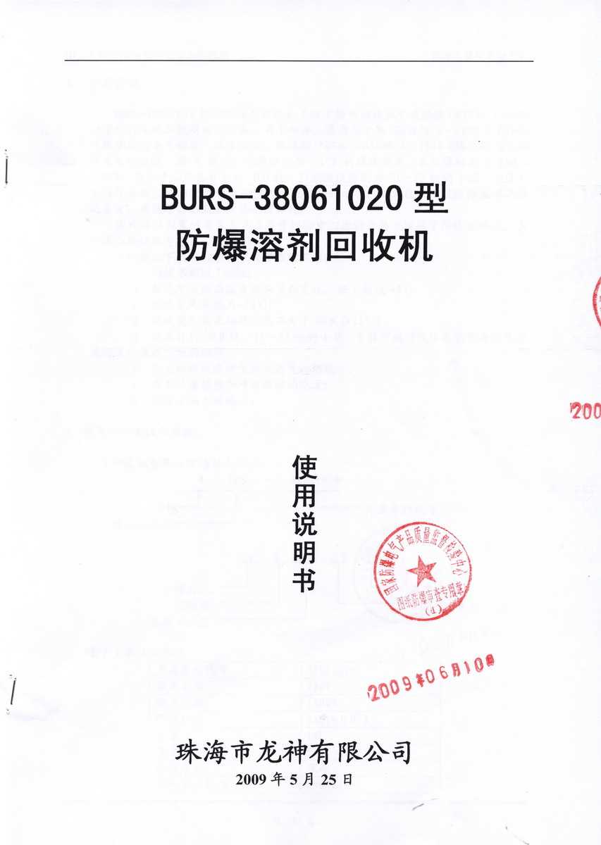 防爆認(rèn)證 防爆溶劑回收機(jī)防爆合格證 BURS系列防爆溶劑回收機(jī)技術(shù)條件 BURS-38061020型防爆溶劑回收機(jī) 使用說(shuō)明書(shū) BURS-38061020型防爆溶劑回收機(jī) 圖紙資料 (以上圖片均可點(diǎn)擊放大) 2012-11-27 34918