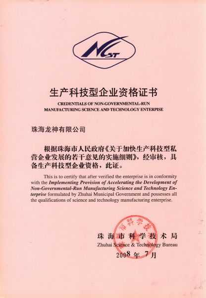 資格證書 一、ISO9001:2008質量管理體系認證ISO9001:2008質量管理體系認證證書 二、廣東省民營科技企業(yè)資格證書民營科技企業(yè)資格證書 廣東省民營科技企業(yè) 三、珠海市生產(chǎn)科技企業(yè)證書生產(chǎn)科技型企業(yè) 珠海市生產(chǎn)科技型企業(yè) 認定證書 生產(chǎn)科技型企業(yè)資格證書(以上圖片均可點擊放大) 2012-11-27 37332