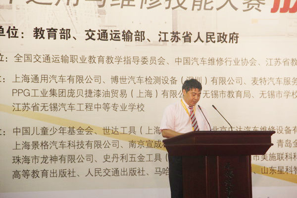 6月20日上午,2013年全國(guó)職業(yè)院校技能大賽中職組“雪佛蘭杯”汽車運(yùn)用與維修技能大賽開幕式在無錫汽車工程中等專業(yè)學(xué)校體育館舉行。交通運(yùn)輸部道路運(yùn)輸司王水平副司長(zhǎng)、江蘇省教育廳楊湘寧副廳長(zhǎng)、無錫市人民政府華博雅副市長(zhǎng)、大賽主贊助商——上海通用汽車有限公司黨委書記黃強(qiáng)出席開幕式并致辭。裁判員代表洪永楠、參賽選手代表何宇先后宣誓。大賽開幕式由國(guó)家教育部職成教司農(nóng)村教育處劉杰處長(zhǎng)主持。